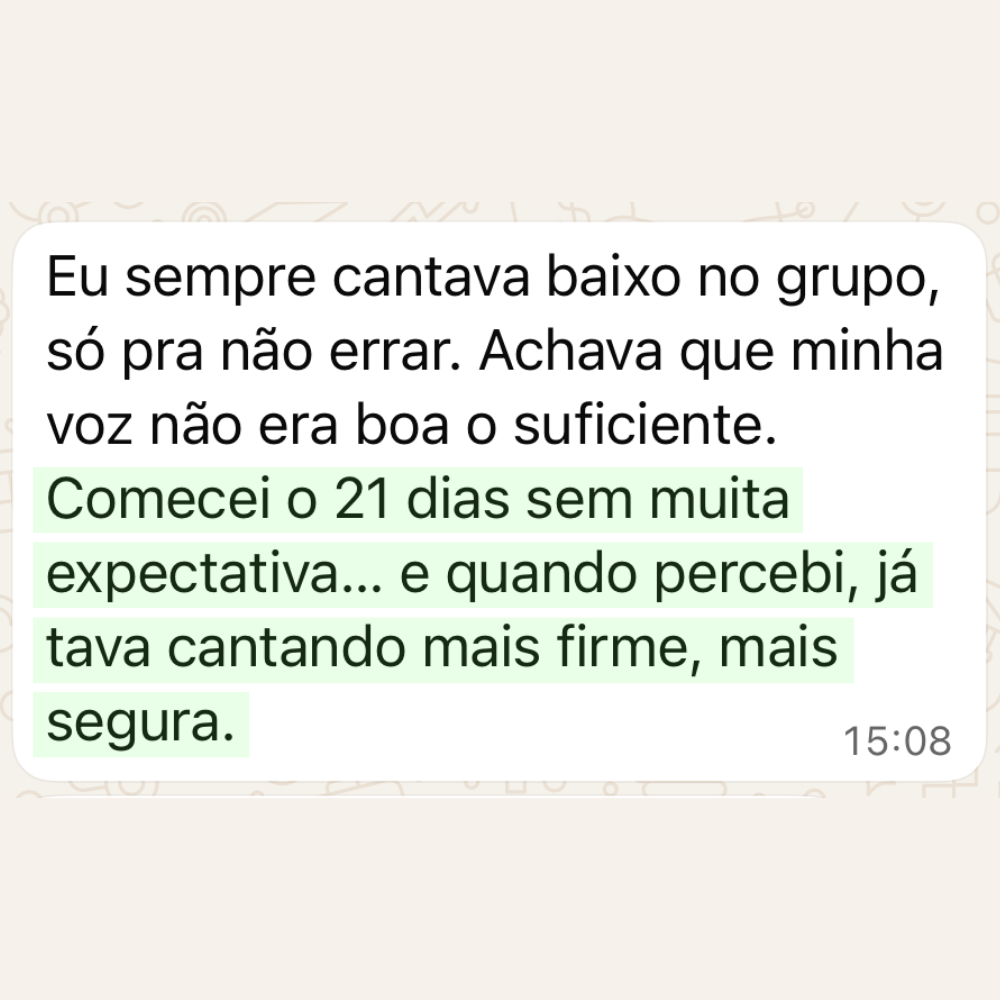 Exercícios simples que soltam a garganta e treinam o ouvido. Você termina a semana cantando. Não tentando.